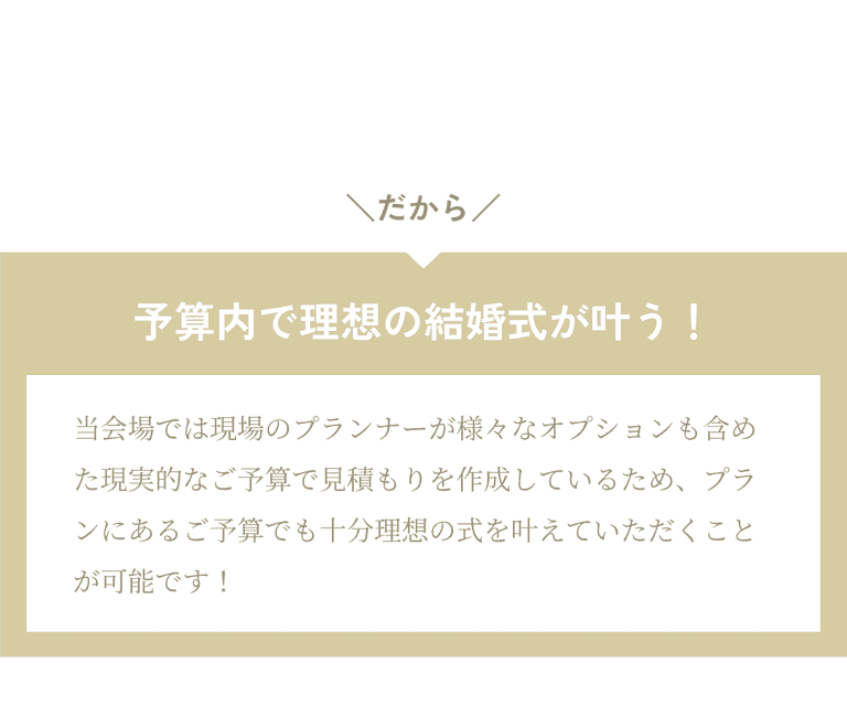 そのため、ご予算に不安がある方にも真摯に寄り添っていきたいと考えております。